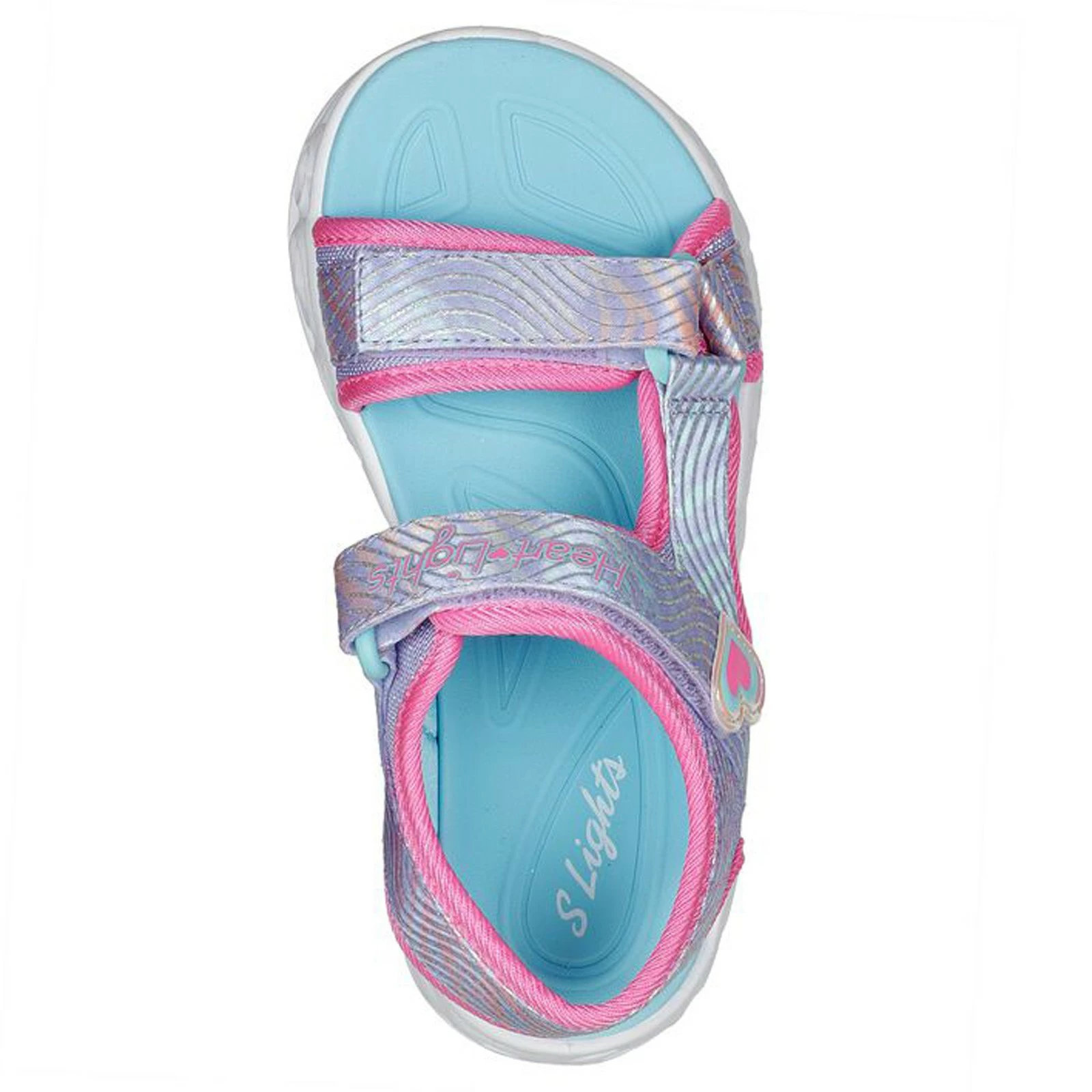 Girl’s Skechers, Heart Lights Sandal – Shimmer Spirit Sandal – Little Kid & Big Kid. She will love the colorful heart lights on the midsole that blink and chase with every step! This fun sports sandal also features a textured metallic upper with fun heart charm.