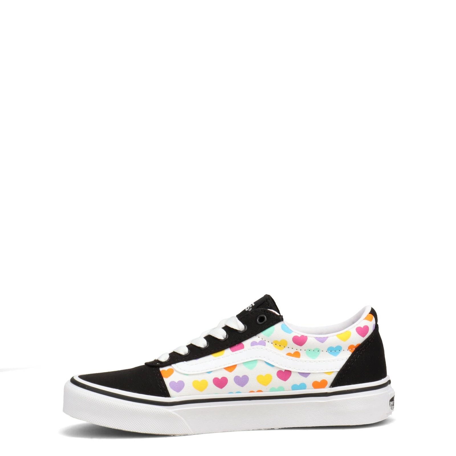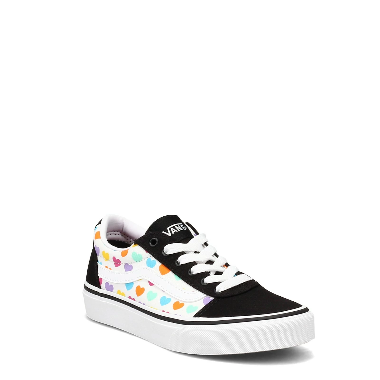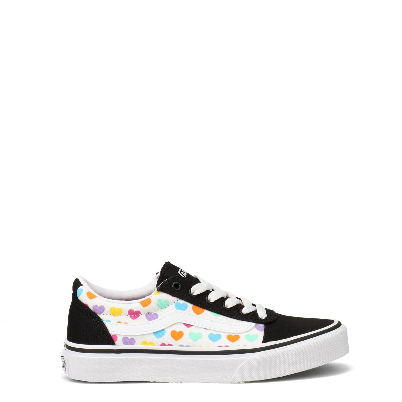 Girl’s Vans, Ward Sneaker – Little Kid & Big Kid. She will love the cool skate sneaker look of this style! This retro sneaker features a fun multi-colored heart print design and Vans classic rubber waffle outsole.