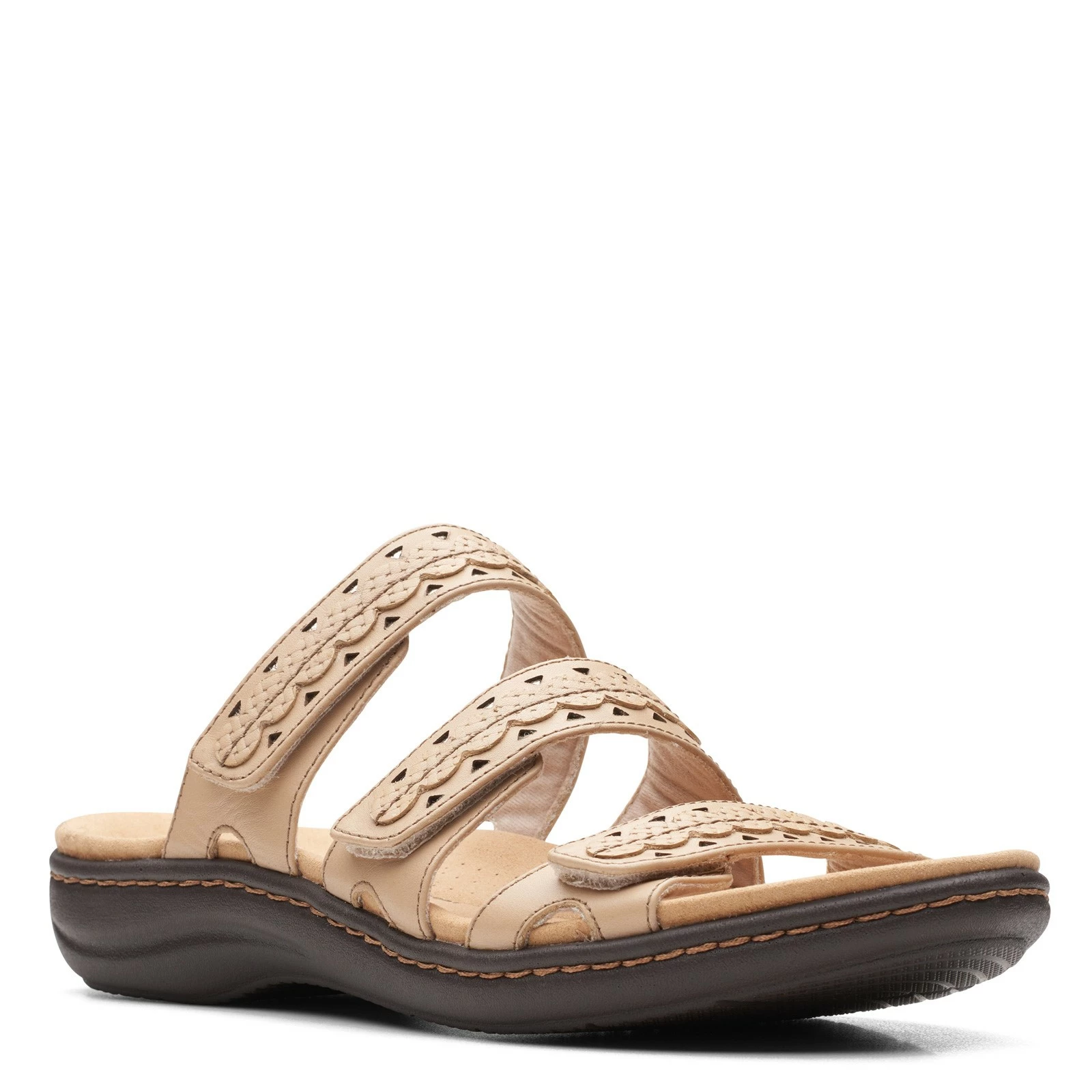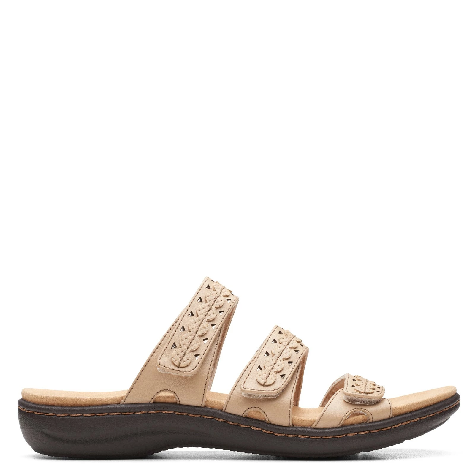 Women’s Clarks, Laurieann Cove Sandal. Classic style and long-lasting comfort combine in the Laurieanne Cove slide sandal from Clarks. Made of responsibly sourced leather, this sandal features a contoured footbed and lightweight sole to keep you at ease all day long.